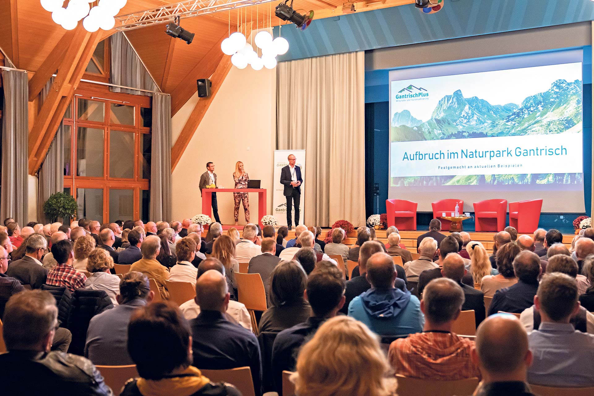 Die beiden Vertreter der GantrischPlus AG, Daniel Baumann und Ruedi Flückiger, berichteten von verschiedenen Projekten, welche die AG sowie Einwohnerinnen und Einwohner überall im Parkgebiet lanciert haben. Auch auf die positive mediale Resonanz wurde hingewiesen. Daniel Baumann hatte sich zum Ziel gesetzt, fünf Gönnerinnen oder Gönner für je ein Zimmer im Berghaus Gurnigel zu finden – für 5000.- Franken pro Stück. Moderatorin Nicole Berchtold überraschte alle mit ihrer Bekanntgabe, selber das erste Zimmer zu sponsern. Am Schluss nahmen über zehn «Zimmerpaten» einen symbolischen Schlüssel in Empfang.