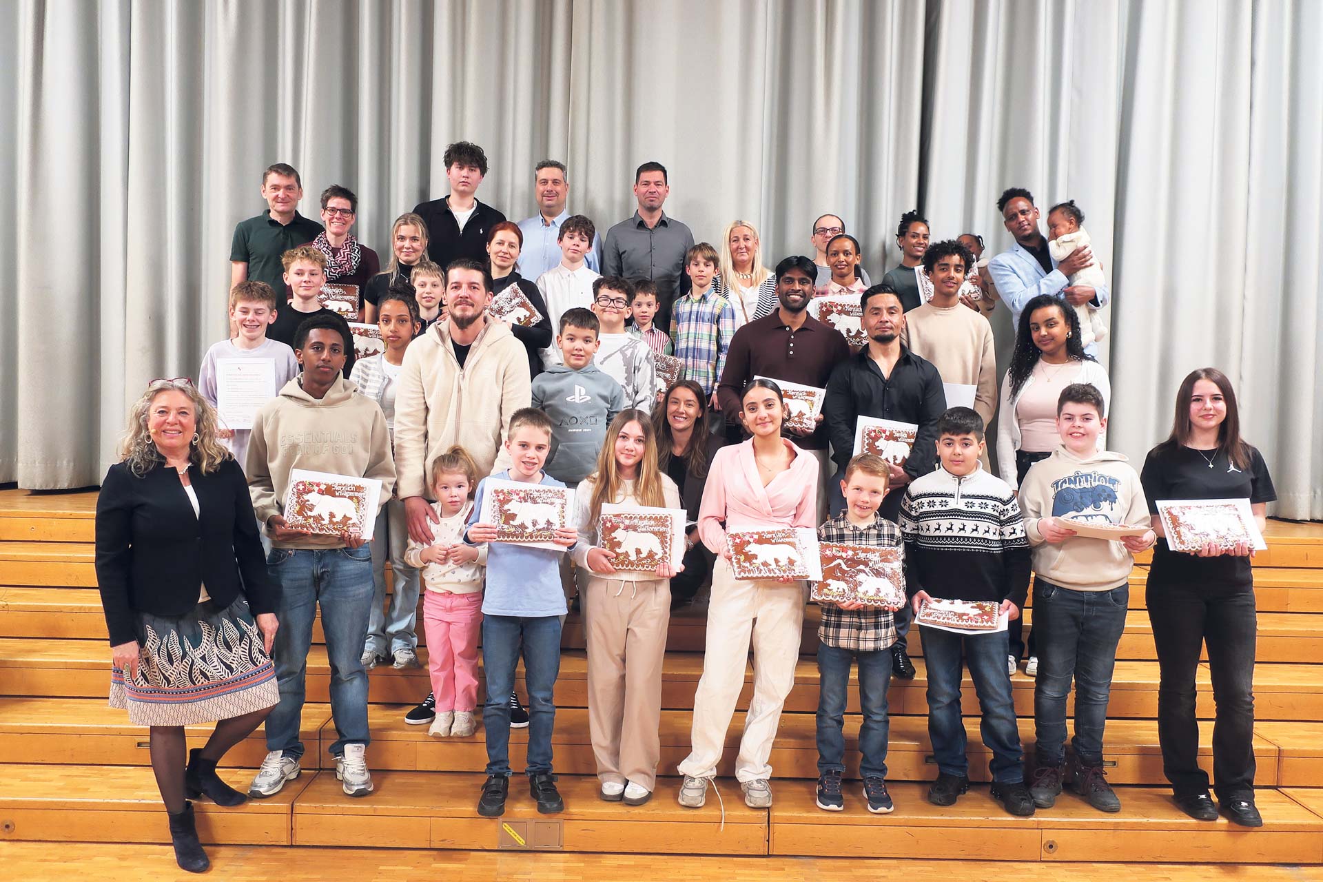 Einer von ihnen ist Wahid Amiri. Im Juni 2015 wurde der damals erst 15-Jährige von der Schweizer Grenzpolizei im Zug aufgegriffen, nach 18 Monaten auf der Flucht vor den Taliban, auf sich allein gestellt. In Belp half ihm ein pensionierter Sekundarlehrer in vielen Belangen, etwa beim Deutschlernen. An der Feier erzählt der heute 30-Jährige seine Geschichte mit grosser Dankbarkeit. Er konnte eine Lehre absolvieren und arbeitet seit vielen Jahren beim Bund. «Ich bin stolz, mich heute Schweizer nennen zu dürfen, und hoffe, dem Land etwas zurückgeben zu können.» Musikalisch umrahmt wird die Feier von Lea Roskamp und Elia Hauser von der Musikschule Belp. Sie begleiten die Anwesenden auch beim Singen der Nationalhymne. Anschliessend erhalten die neuen Schweizerinnen und Schweizer unter grossem Applaus ihre Einbürgerungsurkunde und einen Lebkuchen. Nach der «Belp-Hymne» wartet ein reichhaltiger Apéro, inklusive zahlreicher von den Gefeierten mitgebrachter Desserts aus ihrer jeweiligen Heimat – ein erstes sichtbares Zeichen dafür, wie sie Belp bereichern.