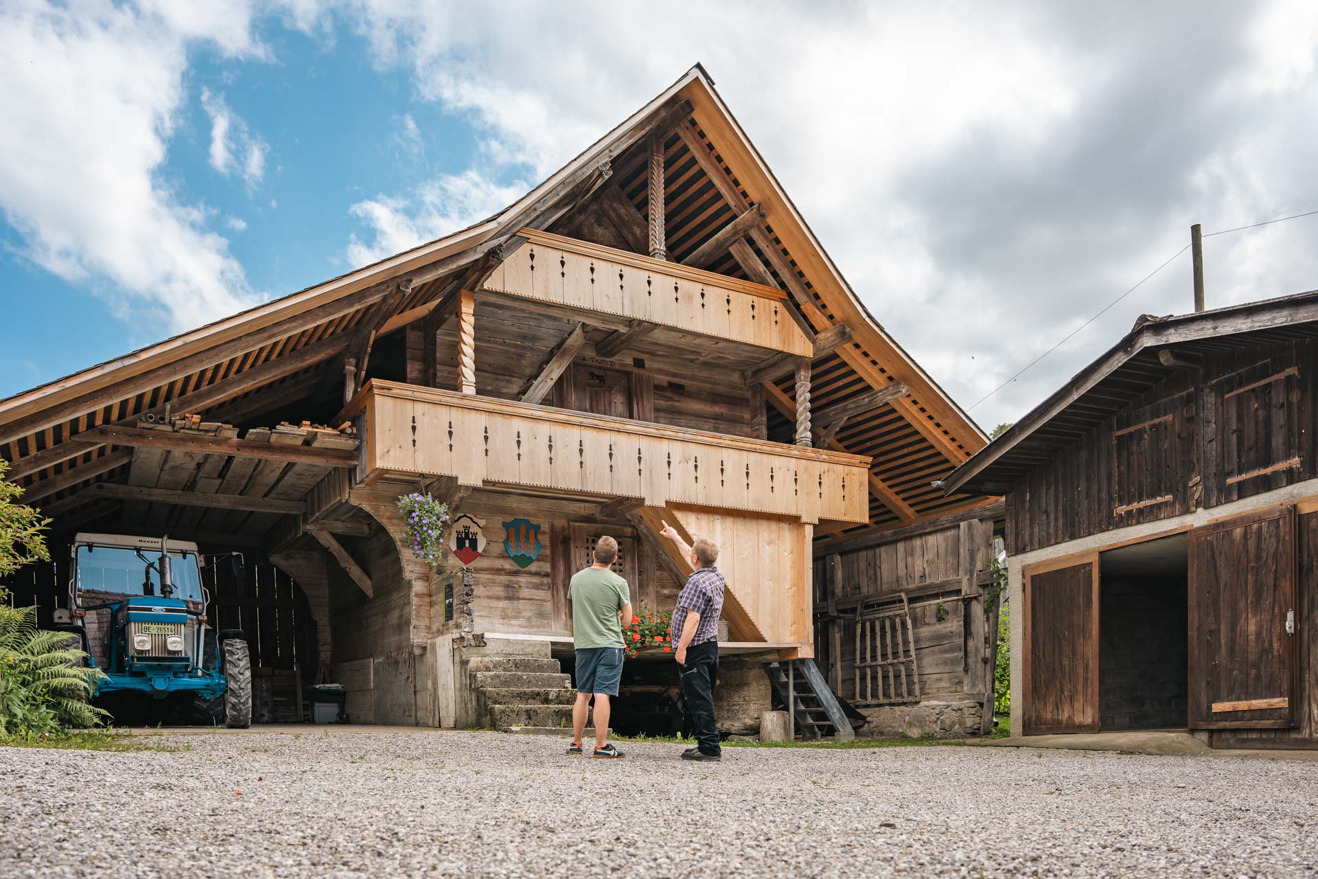 Speicher warenin der Vergangenheit die Überlebenssicherung der ländlichen Bevölkerung – über viele Jahre lagerten in ihnen das Korn und andere Vorräte des Hofes, bei kleineren Gehöften auch mehrerer umliegender Bauernhöfe. Mit der Industrialisierung und sich verändernden landwirtschaftlichen Strukturen verlor die klassische Nutzung der Speicher zusehends an Bedeutung. Einige wurden umgenutzt, viele sind zerfallen oder wurden abgebaut. Im Schwar-zenburgerland hingegen sind viele der Speicher erhalten geblieben. Heute erzählen diese «Spycher» leise Geschichten aus vergangenen Jahrhunderten. Sie sind stille Zeugen einer Baukultur, die im engen Zusammenspiel von Landwirtschaft, Handwerk und Landschaft gewachsen ist. Wer entlang des Spycherwegs – einem Projekt des Vereins Pro Sypcherweg – von Lanzenhäusern nach Schwarzenburg spaziert, kann diese Geschichte buchstäblich erleben – in den Holzwänden, auf den Dächern, in jedem kleinen Detail, das von der Arbeit und dem Leben früherer Generationen zeugt.